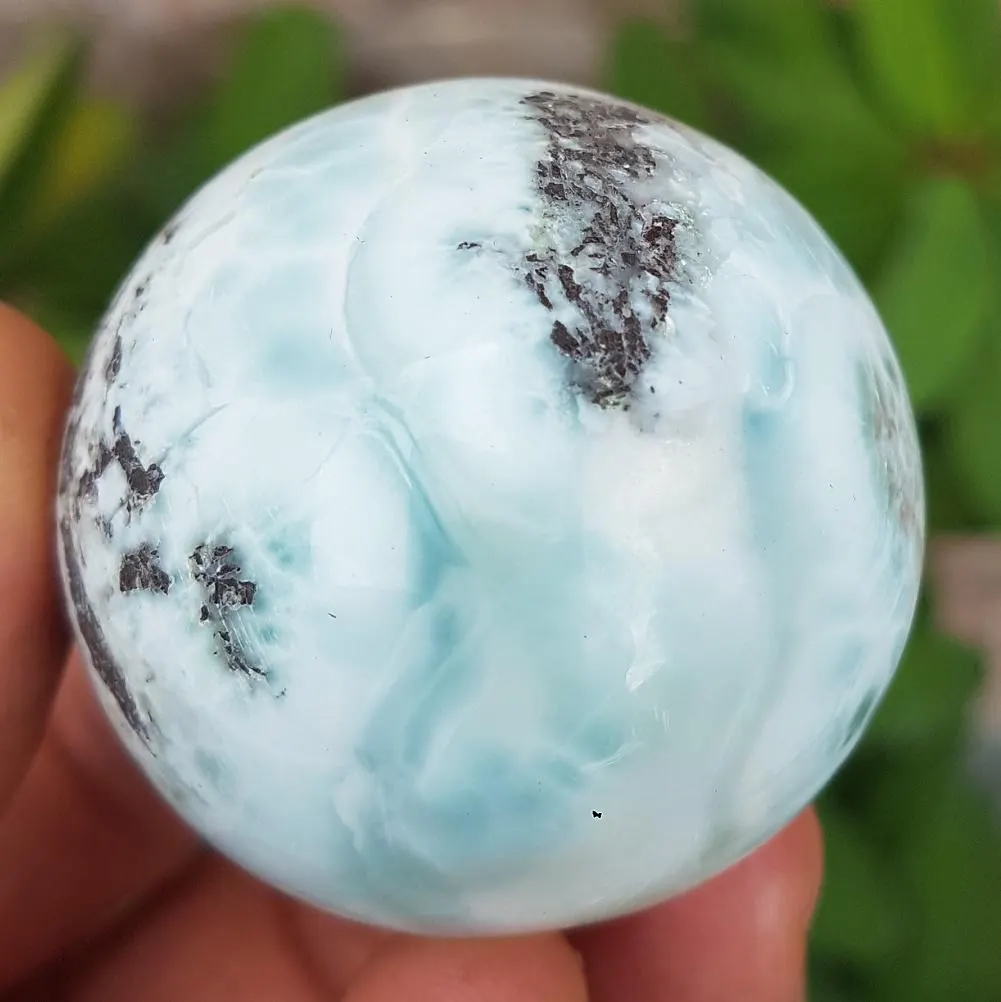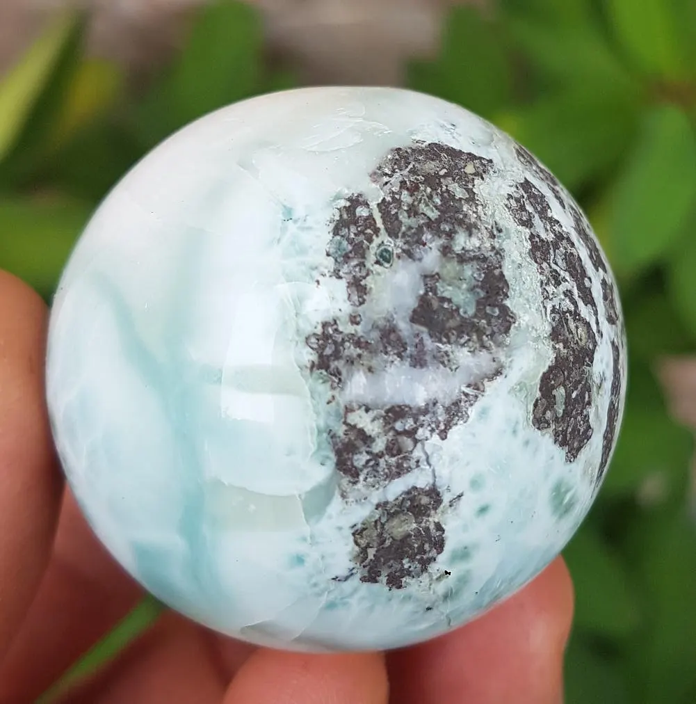 - NATURAL handcarved Larimar Gemstone Pectolite Sphere 147 grams (come-4)