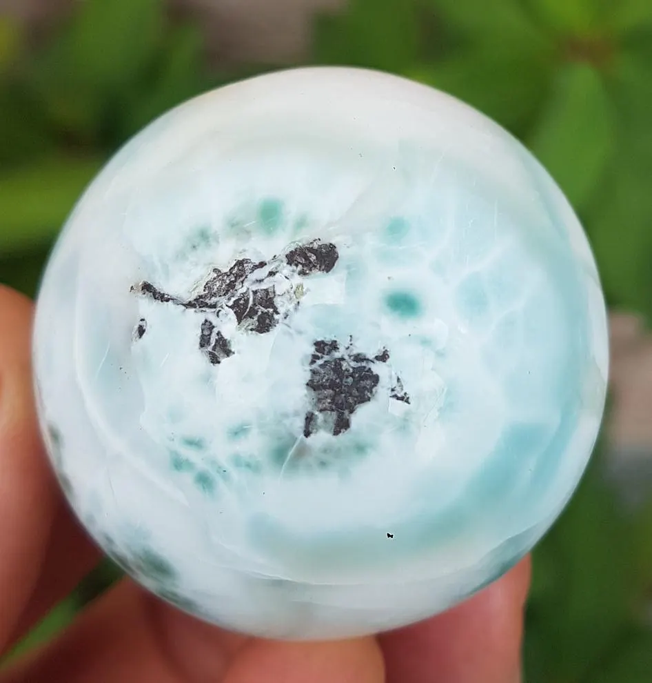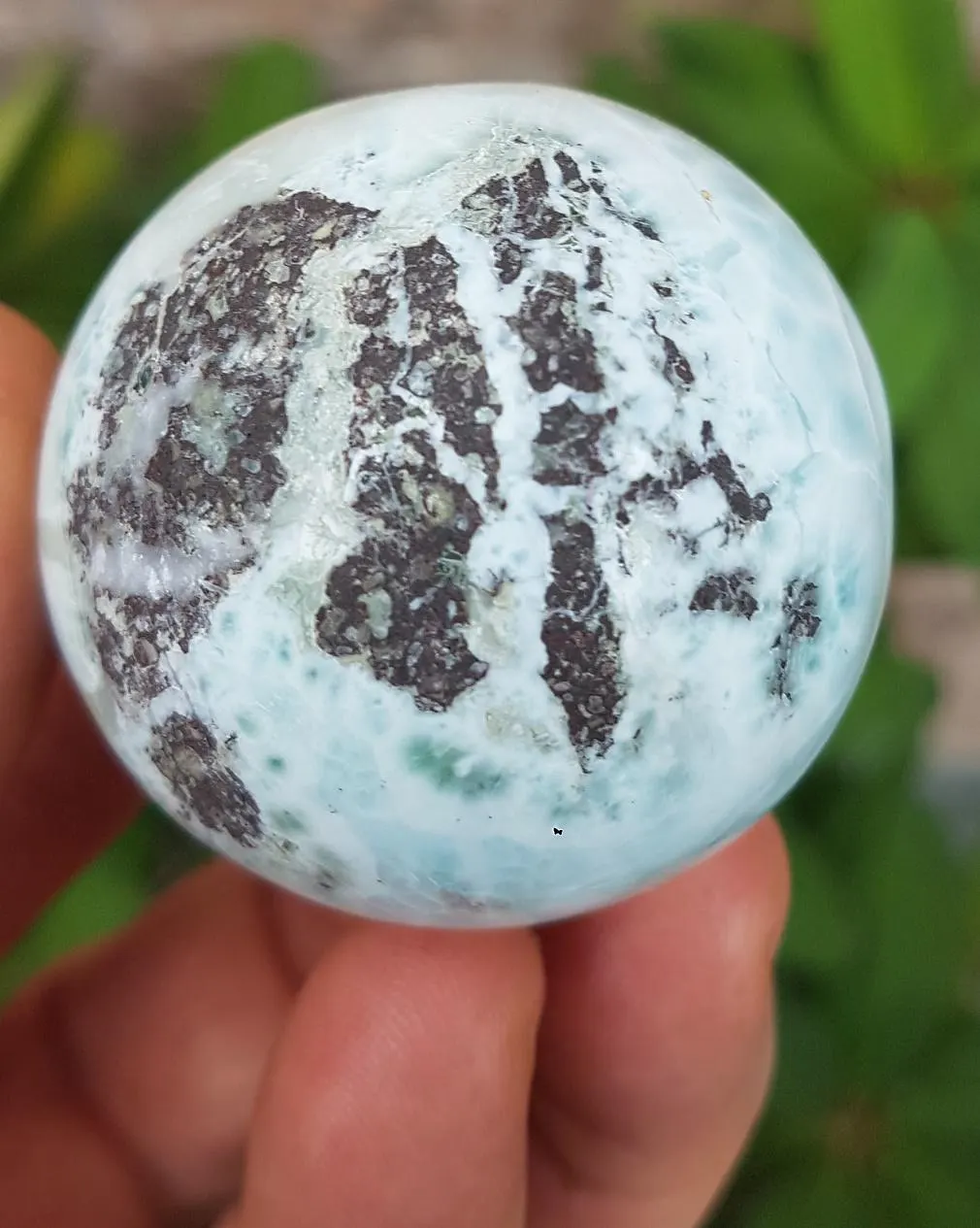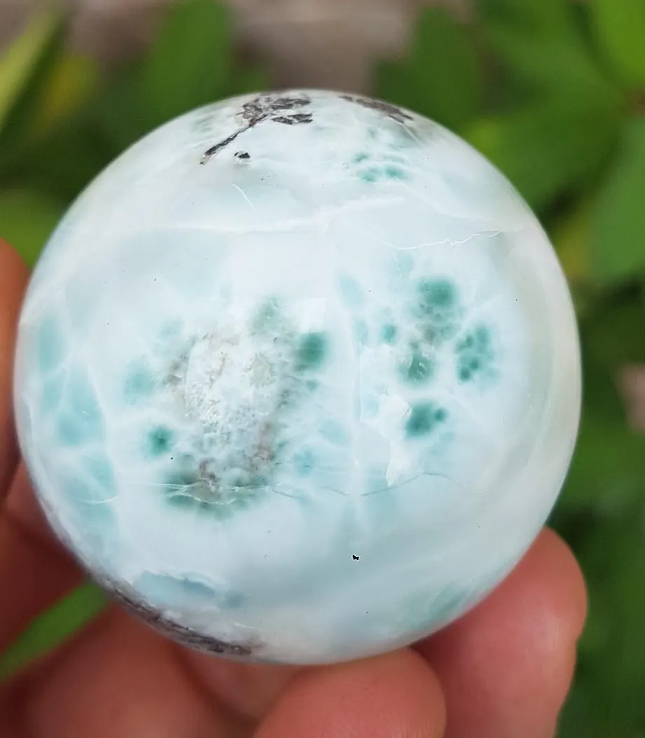 NATURAL handcarved Larimar Gemstone Pectolite Sphere 147 grams (come-4)