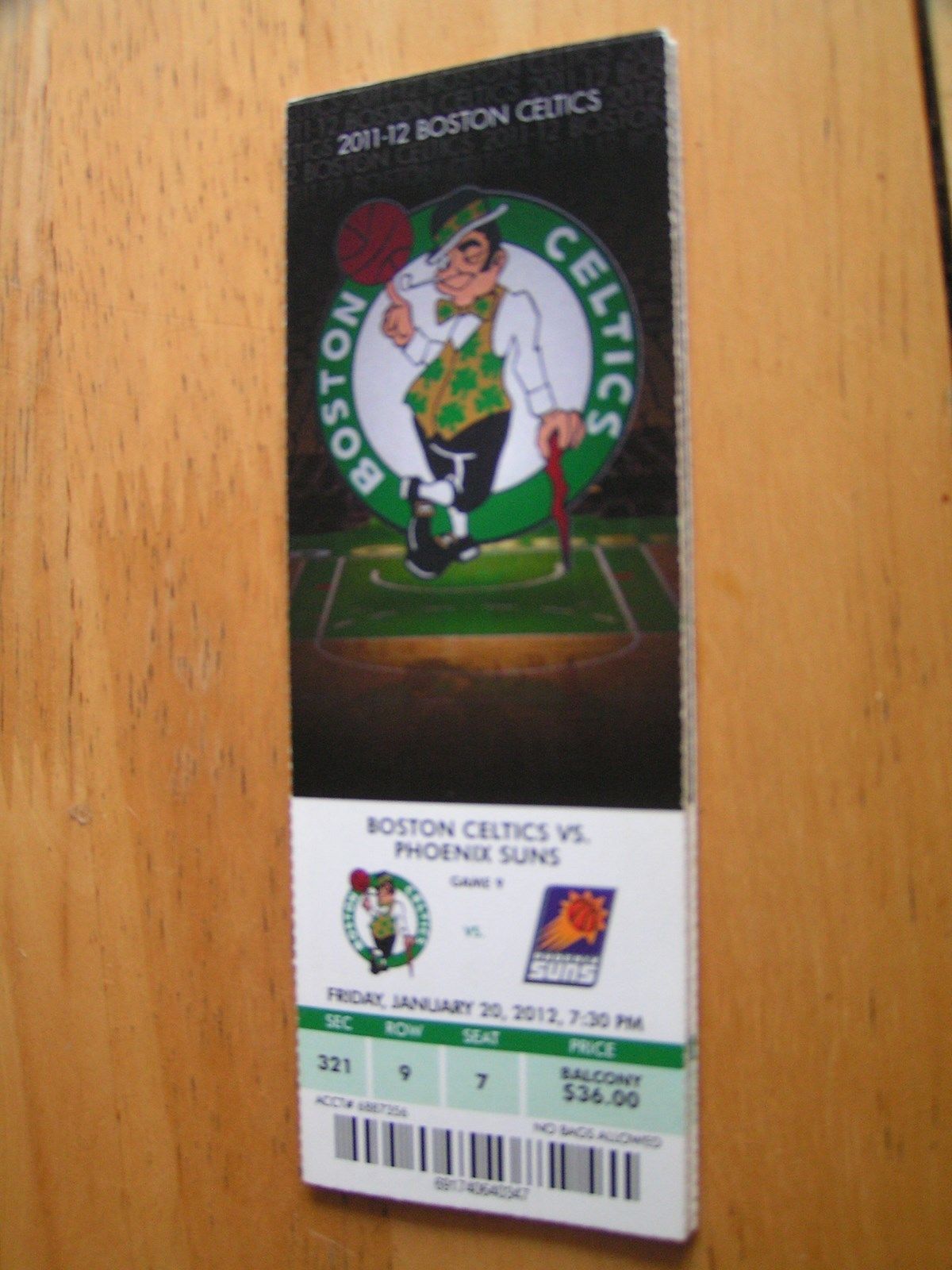 - NBA Boston Celtics Full Unused Ticket Stub 1/20/12 Vs. Phoenix Suns