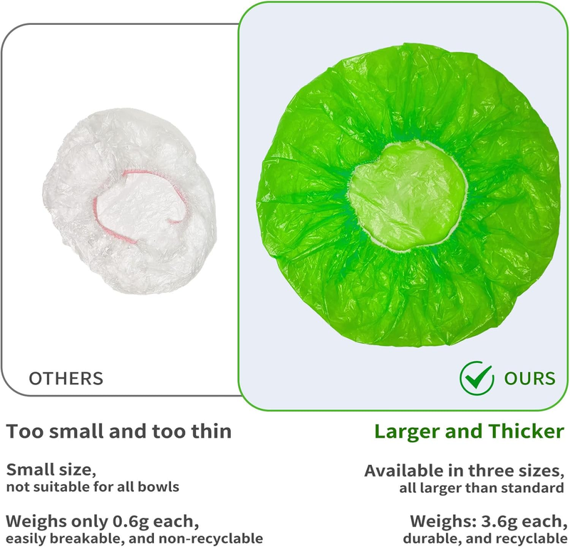 Food Grade Safe Material: Bowl covers are made from PE plastic that is 100% bpa free, these covers are thicker, ensuring durability and a tight elastic seal that helps maintain freshness. The quality of the material and construction offers a reliable solution for food storage.