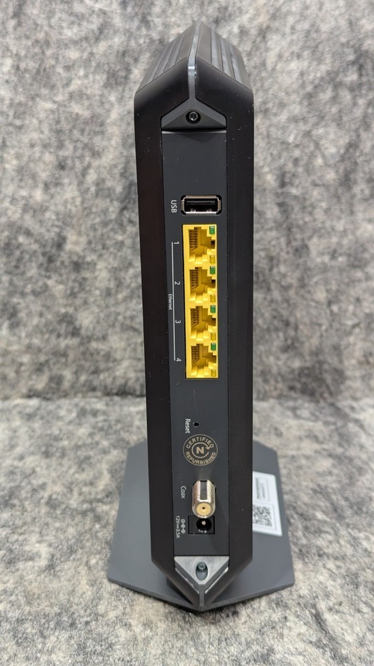Cleaned and disinfected. Tested and works great with no issues. Minor usage wear and the bottom of the model is opening a little as shown in the pictures. Nothing that affects its functionality. Includes a new 25ft Ethernet cable, 7ft Ethernet Cable, Coxial Cable, and generic power supply.