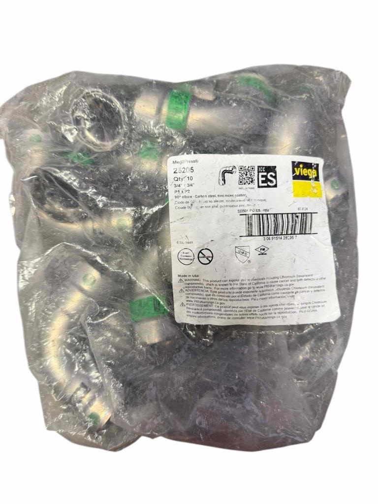 NEW 10 PIECES VIEGA MEGAPRESS 25205 3/4" X 3/4" P1 X P2 CARBON STEEL ZINC NICKEL COATING 90 DEGREE ELBOWS.