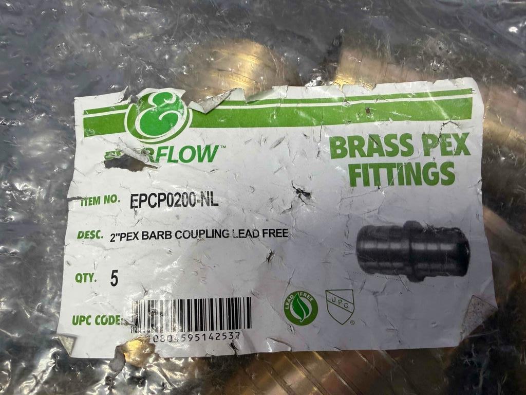 - NEW 5 Pieces Everflow Brass Pex Fittings 2" Pex Barb Coupling PXLN0200-NL