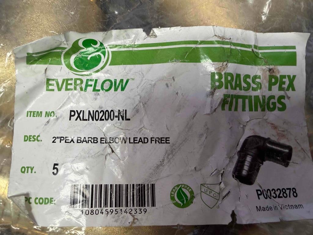 - NEW 5 Pieces Everflow Brass Pex Fittings 2" Pex Barb Elbow Lead Free PXLN0200-NL