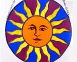 This sale is for a NEW spectacular artist handmade original design Hanging Stained Glass Round Sun Face with attached hanging chain.