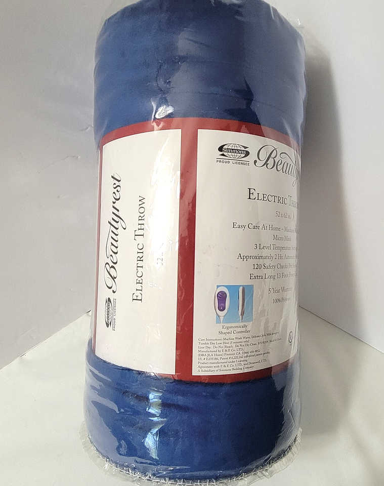- NEW Beautyrest Electric Throw Blanket Soft Micro Mink 52” x 62” Royal Blue