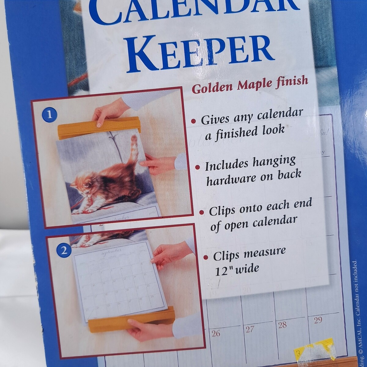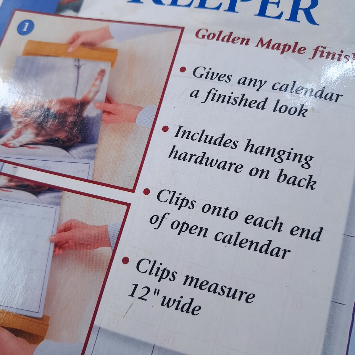 - NEW CALENDAR KEEPER Walnut Creek Stationary wall clip hang golden maple vintage