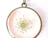 This listing is for a lovely necklace with a circular pendant containing a pressed flower.