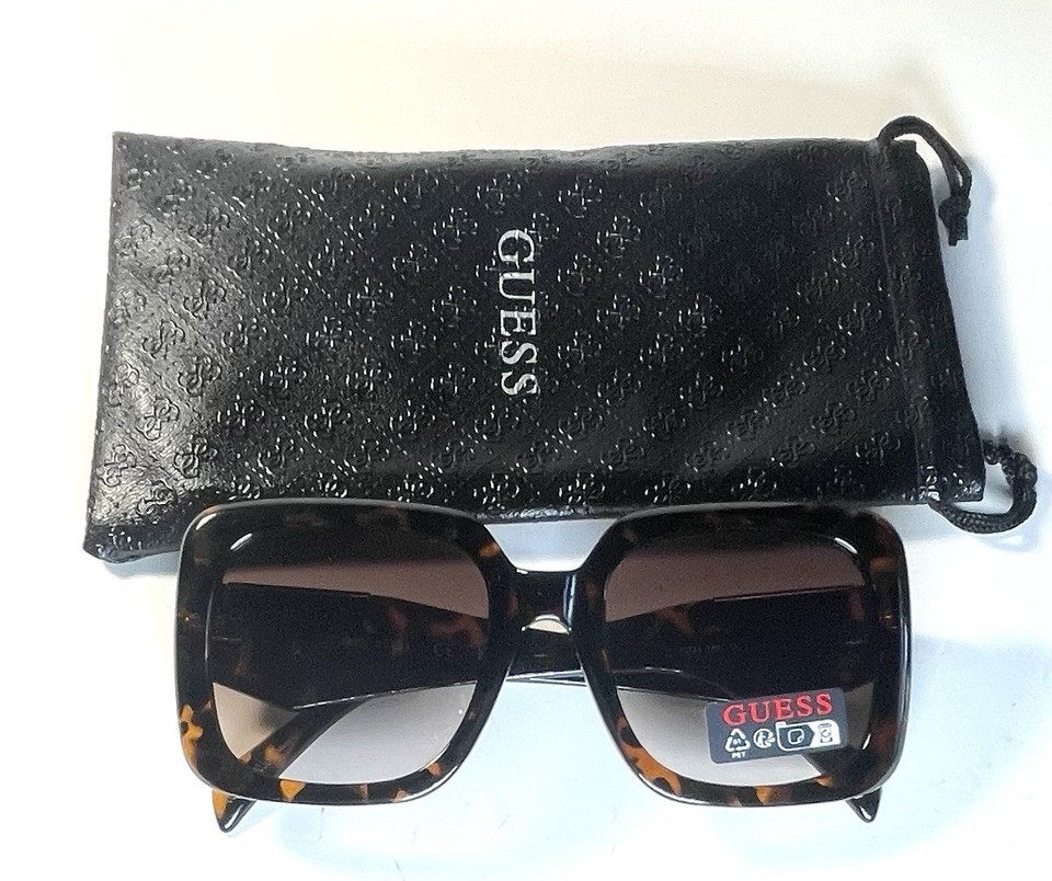 - NEW GUESS Large Brown Oversized Prism Tortoise Logo Sunglasses + Case