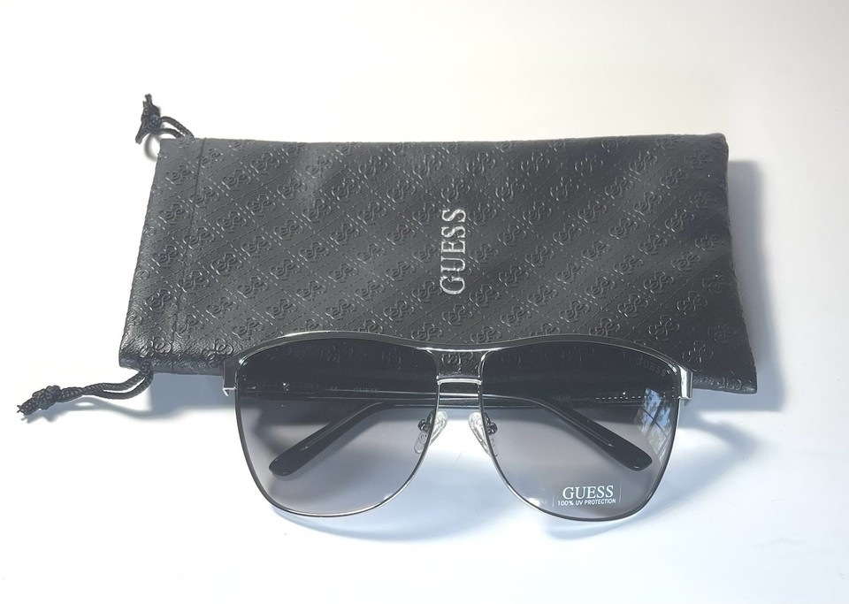 - NEW GUESS Large Silver GUF 255 Logo Unisex Sunglasses + Case