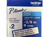 BRAND NEW 2 PACK GENUINE BROTHER P-TOUCH LAMINATED LABEL TAPE 3/8" BLACK PRINT ON WHITE. TZE-2212PK.