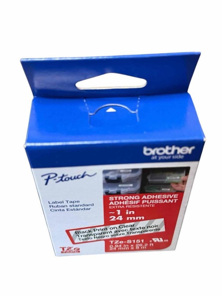 - NEW Genuine Brother P-Touch TZe-S151 1" Black Print on Clear Label Tape Strong