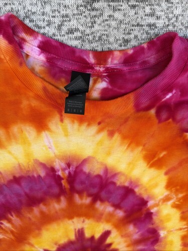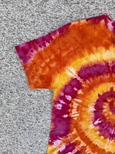 - NEW Gildan Women’s Orange Pink Yellow Spiral Tie Dye Short Sleeve Shirt MEDIUM