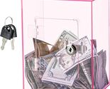 X-Large Acrylic Clear PINK Piggy Bank with Lock for Adults and Kids, Money Saving ...