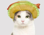 Brand new Cat Hat Fish Taco Halloween Costume Goldfish Headpiece. A shiny orange goldfish sandwiched between frilly fabric lettuce in a felt taco. Hook loop closure under the chin. One size fits most. Hand wash cold, dry flat. Measures approximately 6.5 inches wide excluding the fish when laying flat, 4.5 tall, 2.5 deep. Designed for cats, would probably fit a small dog as well.