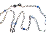 NEW Lacy Filagree Necklace w/ Clear & Blue Crystal Beads on Black Metal Chain