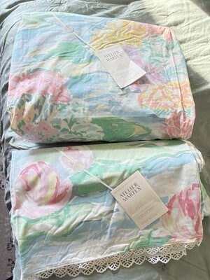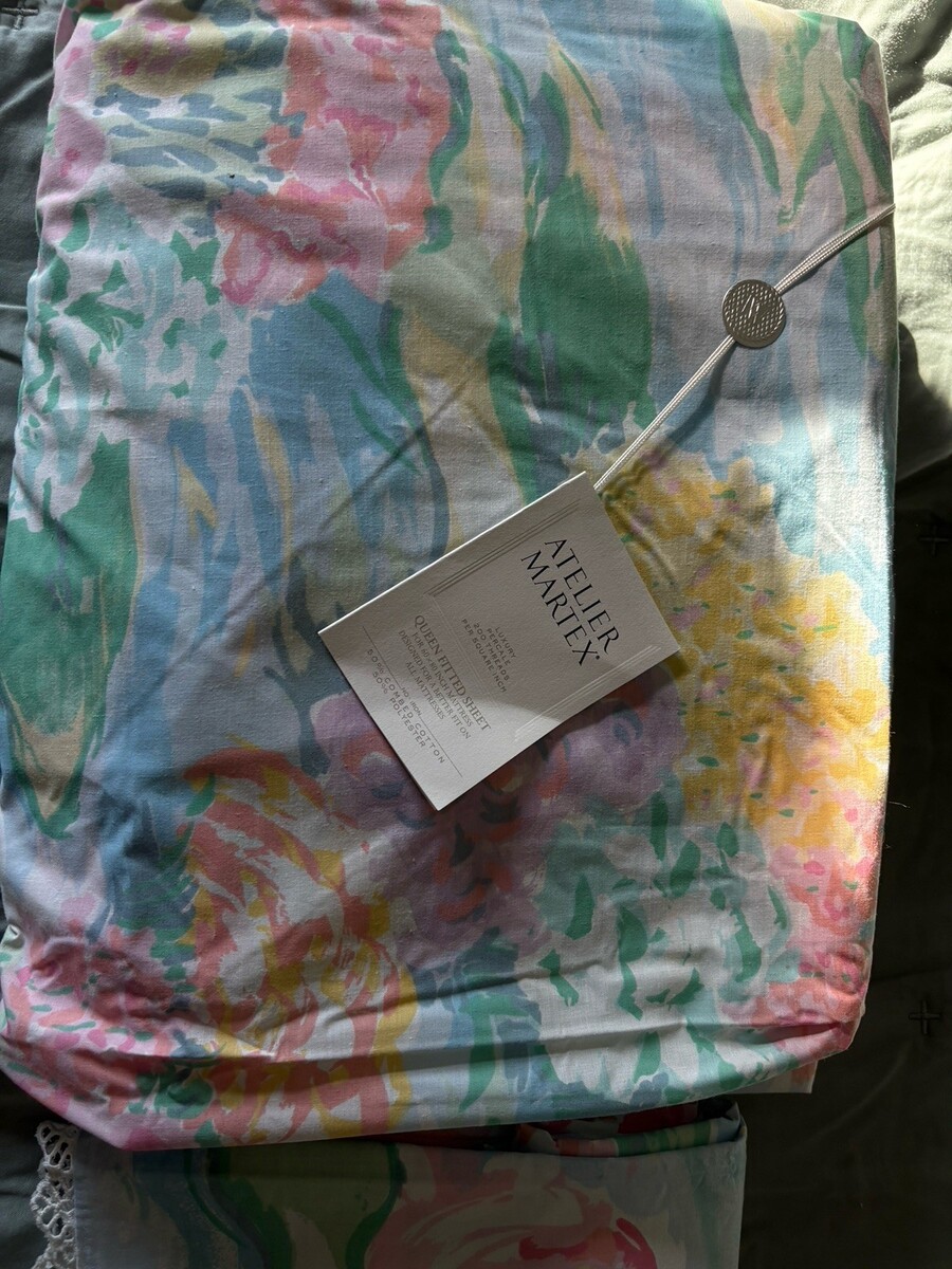 - NEW Martex Atelier Monet Water Lilies Queen Flat Fitted Sheets Lace Green Pink