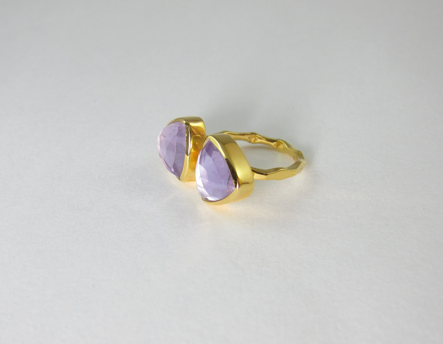 - NEW Marz Gems Gold Plated Sterling Silver Amethyst Gemstone Adjustable Ring