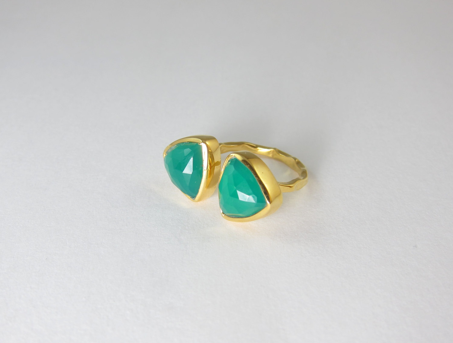 - NEW Marz Gems Gold Plated Sterling Silver Green Onyx Gemstone Adjustable Ring
