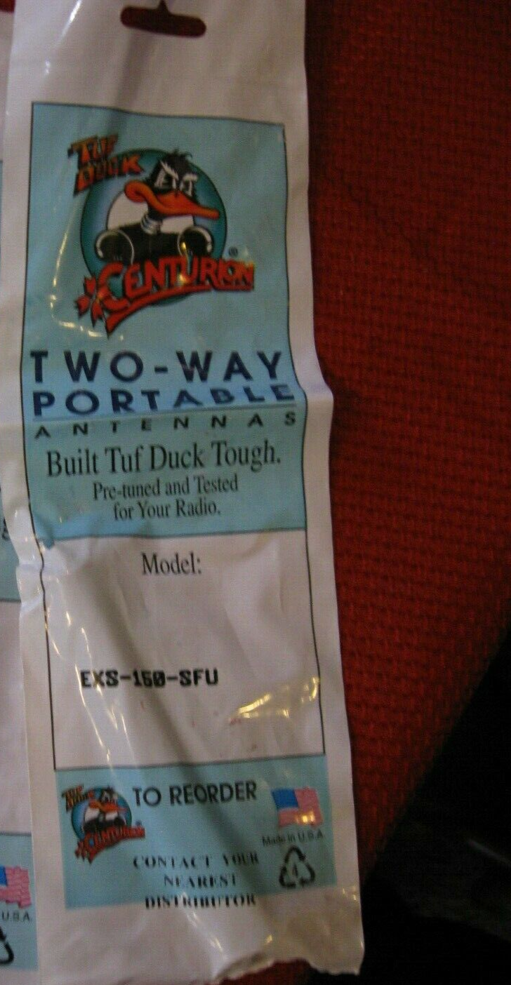 NEW OEM LOT 2 Tuf Duck Centurion Radio Antenna Helical 150-162 MHz # EXS-150-SFU This is one you cant find anymore. They do not make them like they used to!! This is a nice antenna. Get some good comms with this. You will love. FREE USA SHIP ** Please check out my other radio/communication equipment auctions. We bought off a business that was auctioning off all their stuff that they accumulated over the last 40 Years!!!