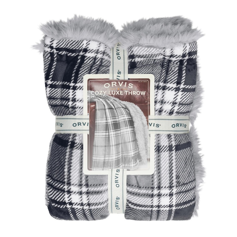 This Orvis Cozy Luxe Throw is perfect for curling up on chilly nights. This throw has a velvety plush plaid print face, reversing to a luxurious long pile faux fur.