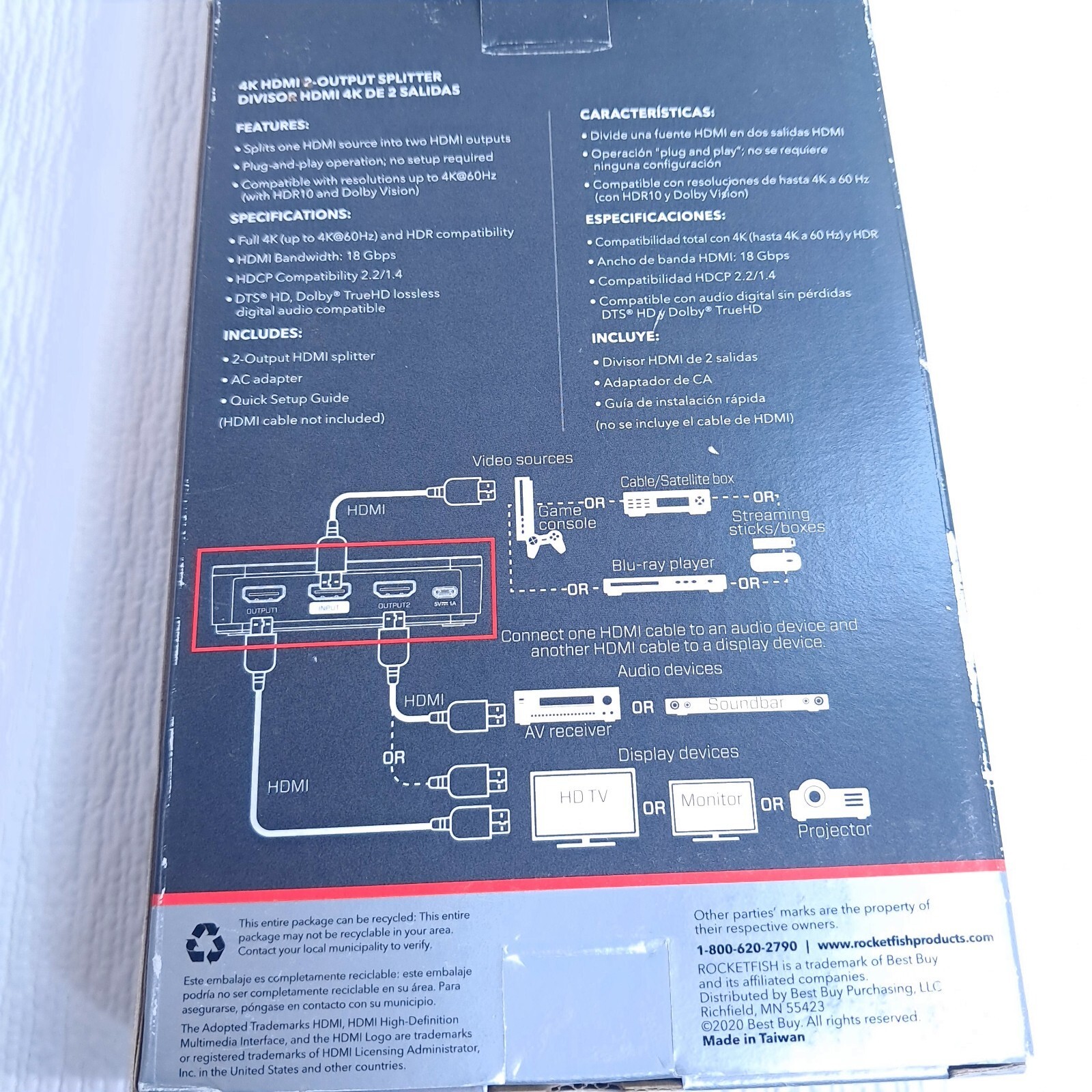 - NEW Rocketfish 2-Output HDMI Splitter 4K at 60Hz and HDR Pass-Through rf-g1603