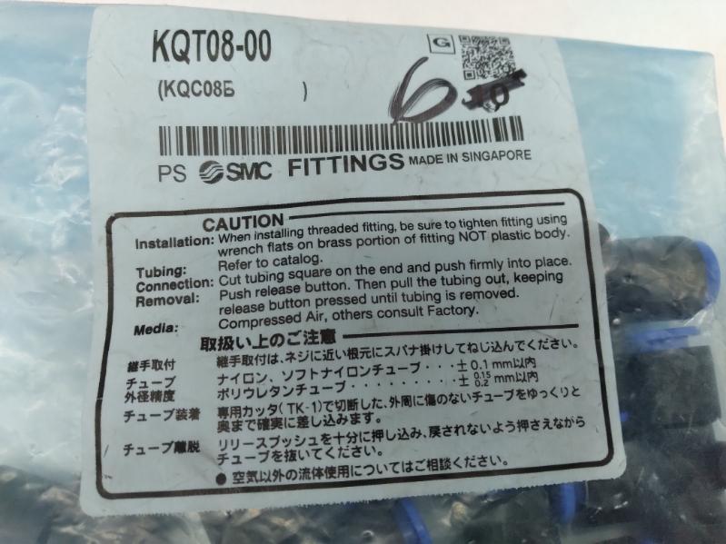 NEW SMC KQT08-00 Push-In 90 Degree Connector Lot of 6