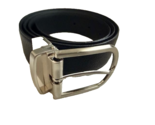 - NEW TUMI leather men's belt black 34 made in France reversible black pebble