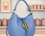 You Are Looking At A Very Practical Bluewood Full-Grain Leather Miller Metal Logo Mini Hobo/Tote Bag By Tory Burch