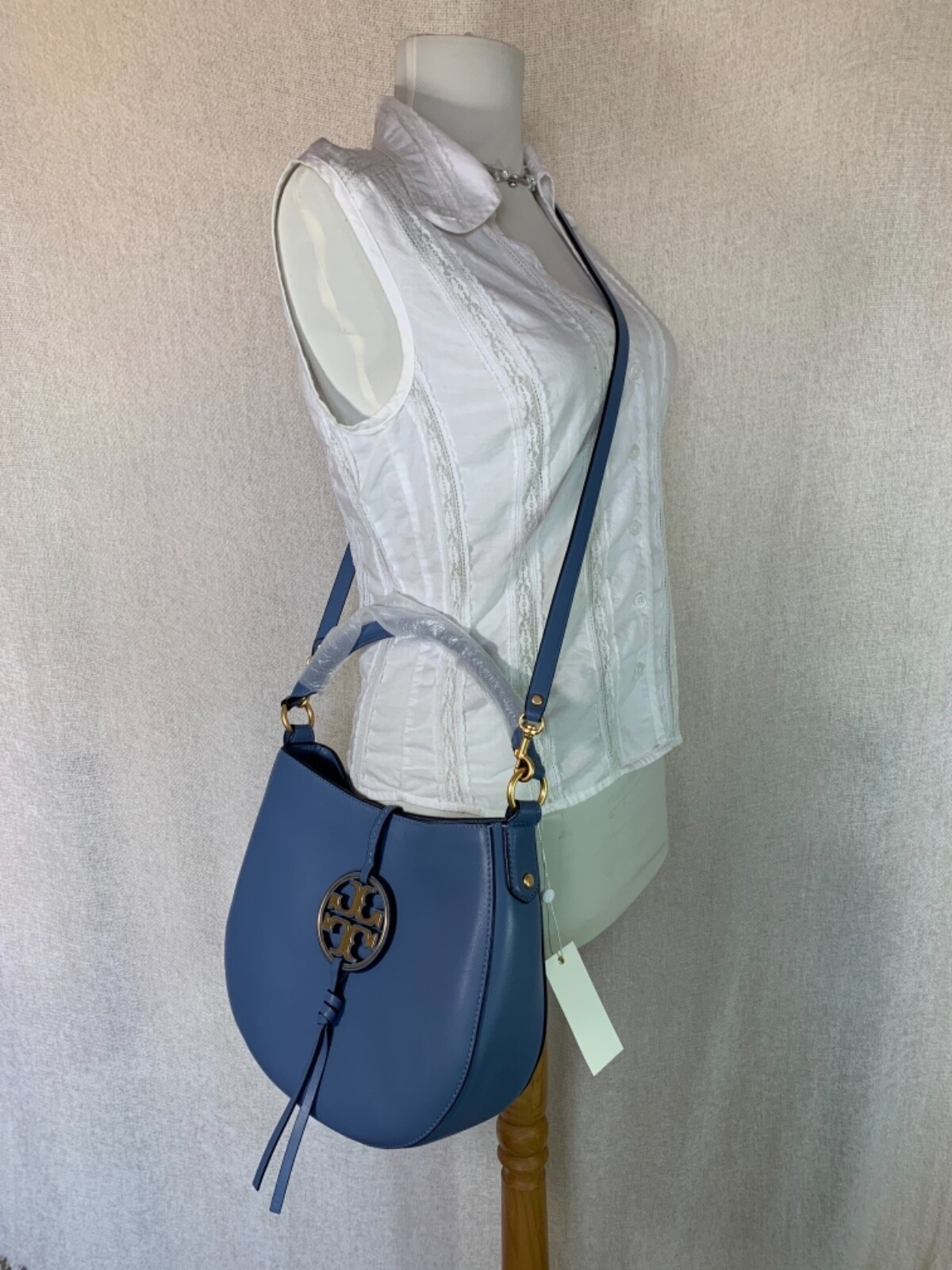 - NEW Tory Burch Miller Metal Logo Blue Wood Leather Mini Hobo/Crossbody Bag AUTH