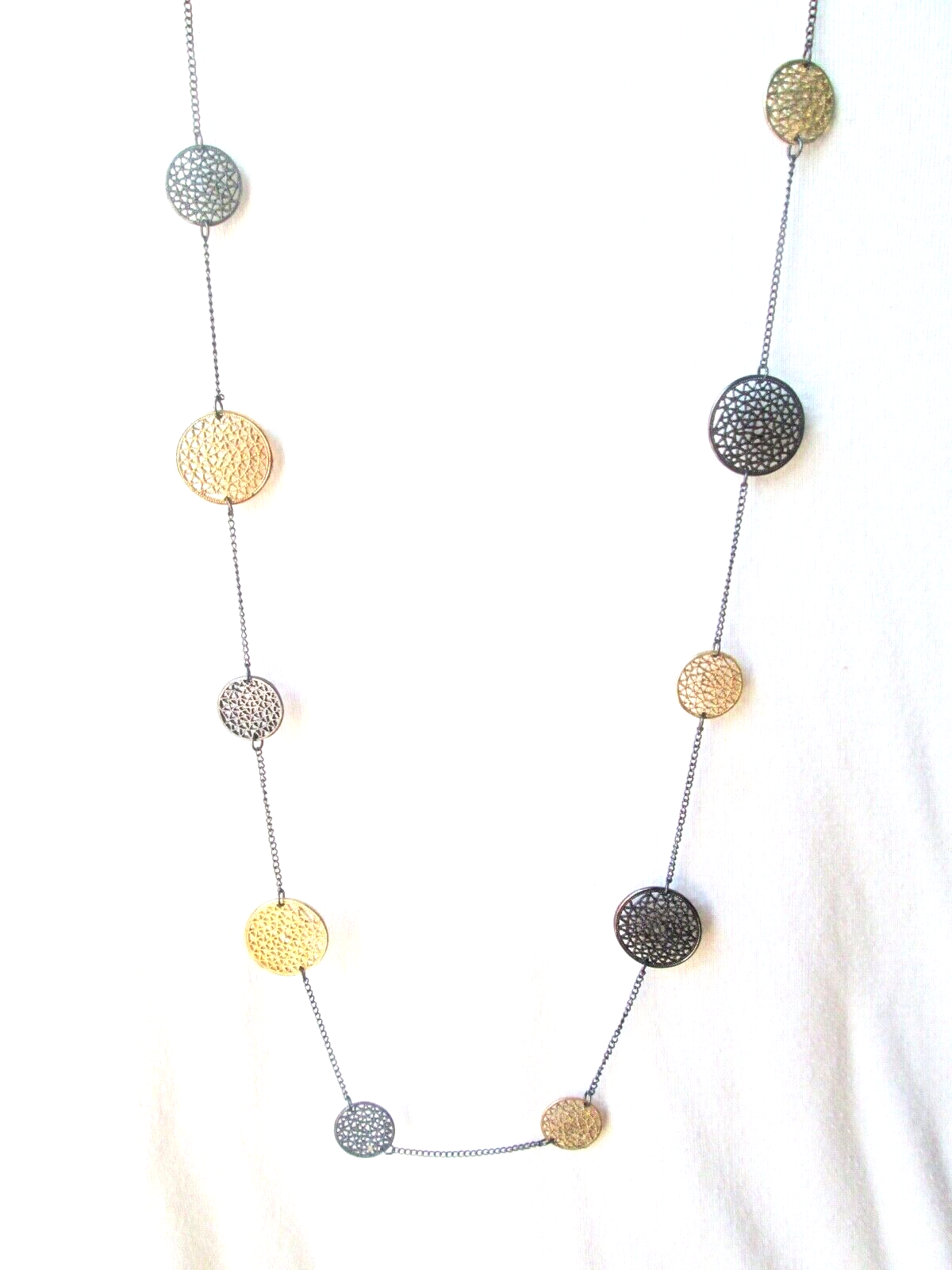 - NEW VCLM Filigree Necklace Gold Tone & Grey Round Metal Mandala Style Circles