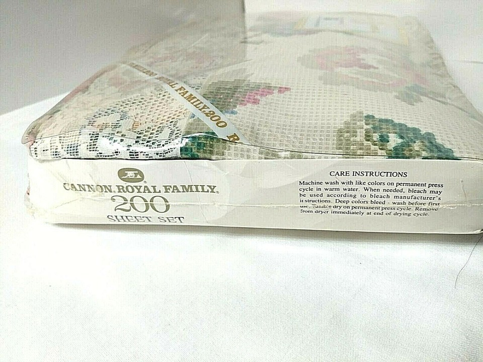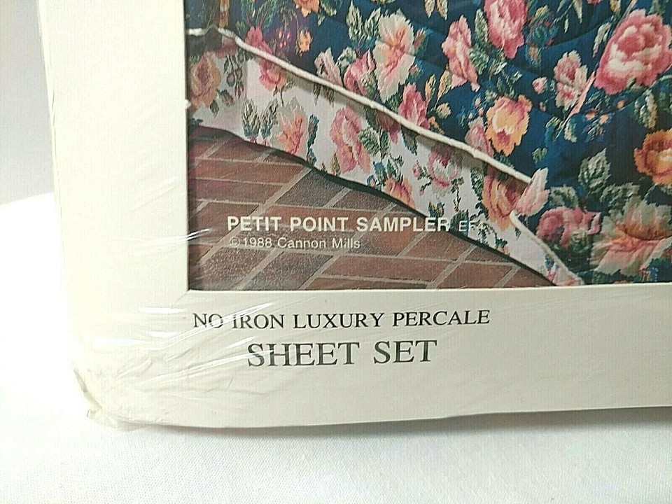 - NEW Vtg Twin 3 pc Sheet Set Petit Point Sampler Lace Cottagecore Cannon Royal