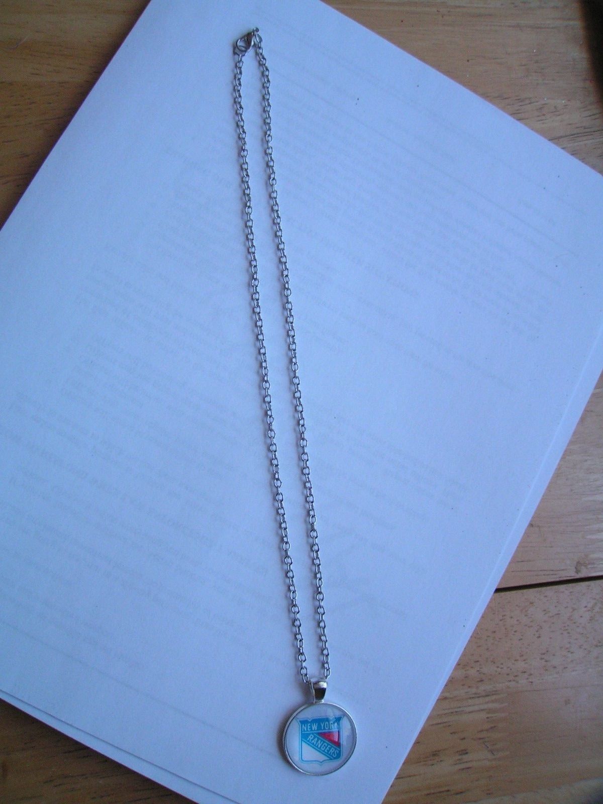 - NHL NY Rangers Glass Cabochon Chain Pendant Charm Necklace Fast USA Shipping!