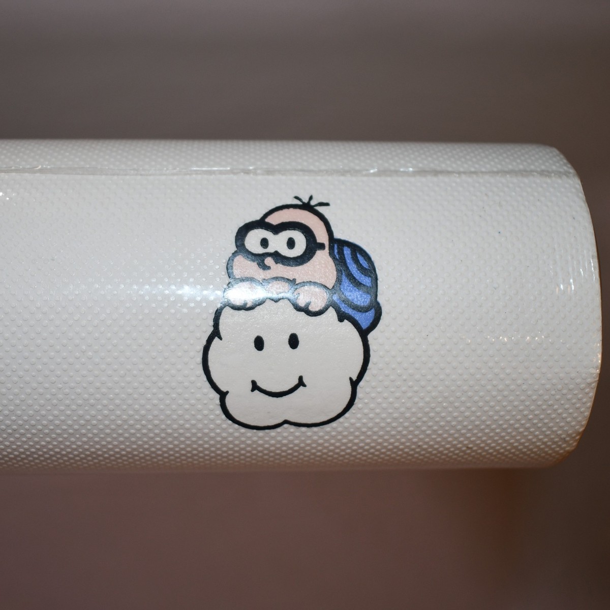 The product is a vintage sculptured vinyl wallcovering featuring Nintendo's Mario wallpaper. It is white with color, made of vinyl, and has a coverage of 50 sq ft. The wallpaper is pre-pasted, washable, and strippable, making it easy to apply and remove. Perfect for any room, especially a kid's bedroom, this retro-style wallpaper adds a touch of nostalgia and fun to any space. Designed by Nintendo, this unique and playful wallcovering is sure to bring a smile to any child's face.
