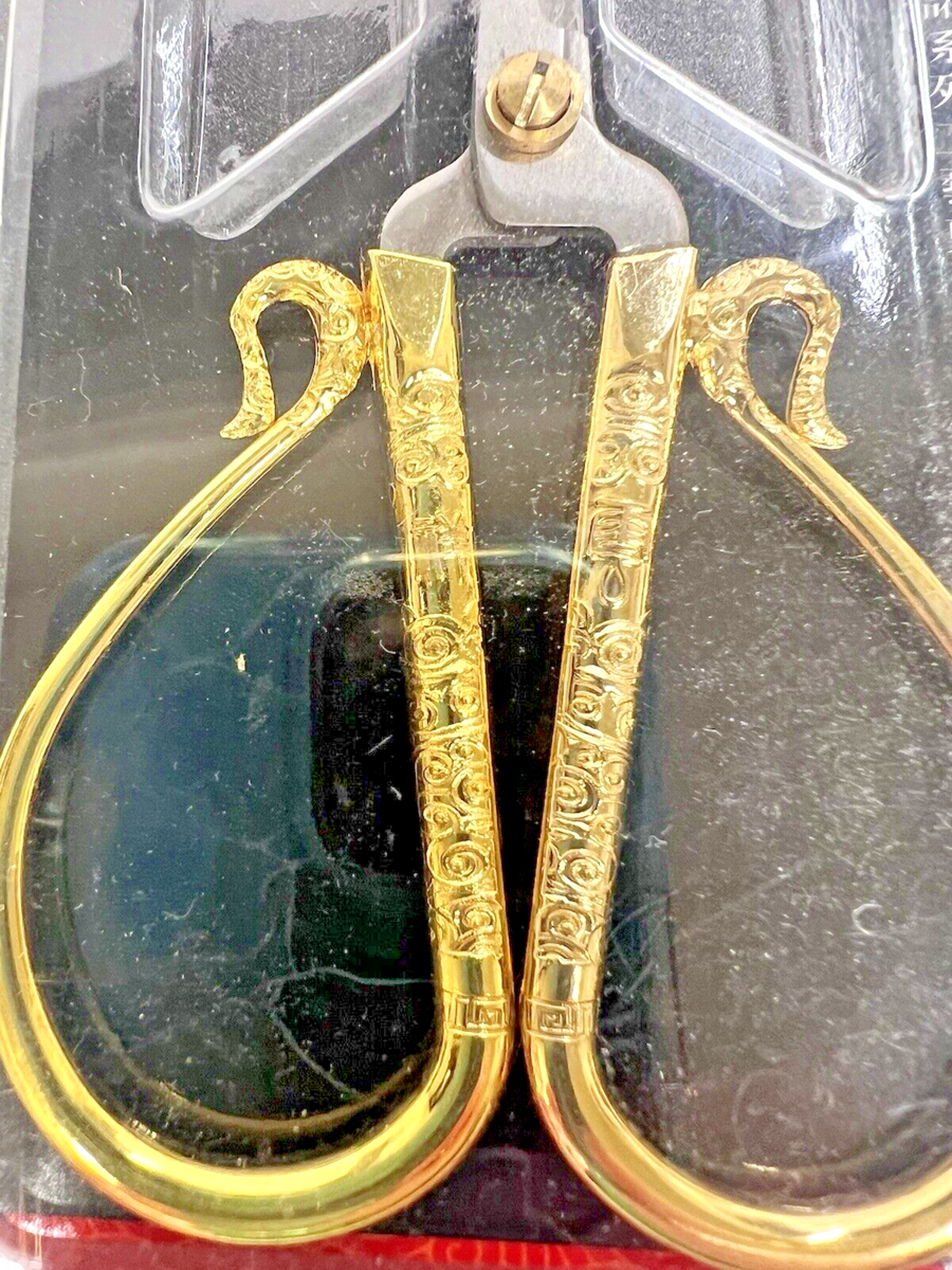 NIP Jie Nuo Beautiful Embroidery Scissor Wide Hand End Never Used Gold Tone New in package