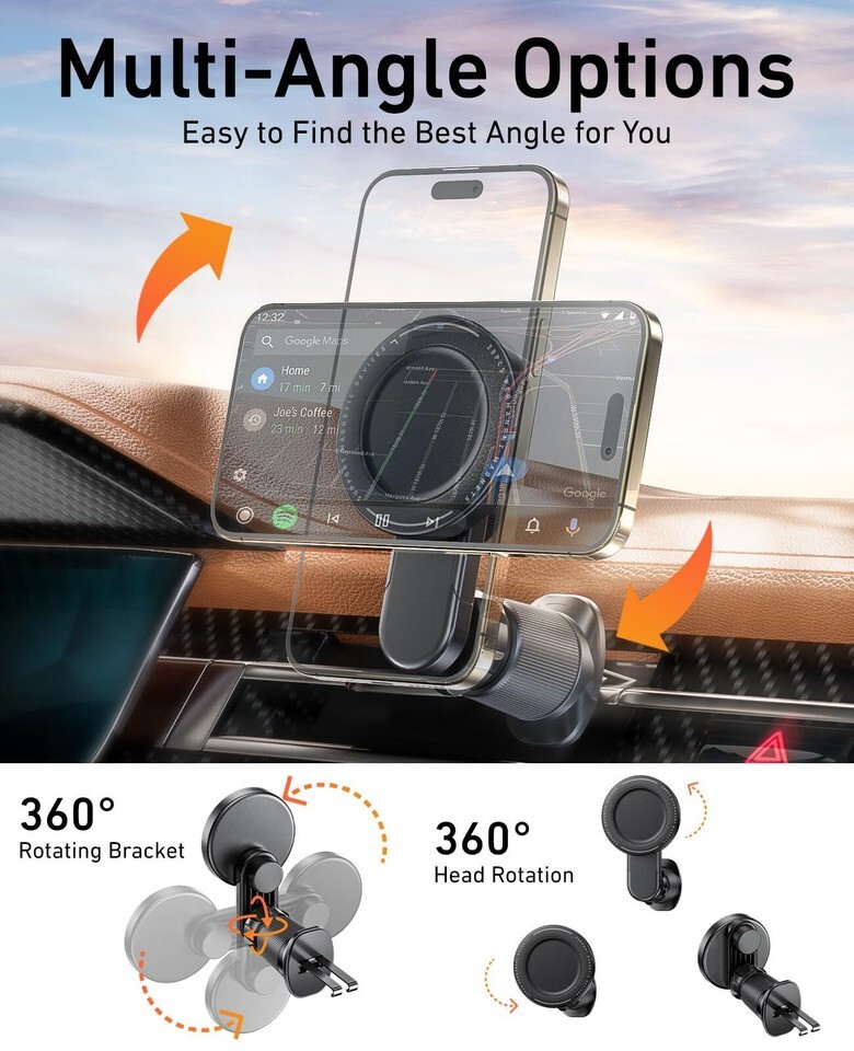 - NIYEVN MagSafe Car Mount, 20 Magnets, 360° Rotation, Air Vent Holder