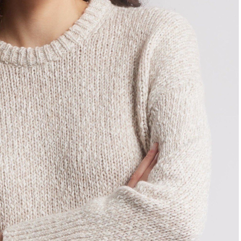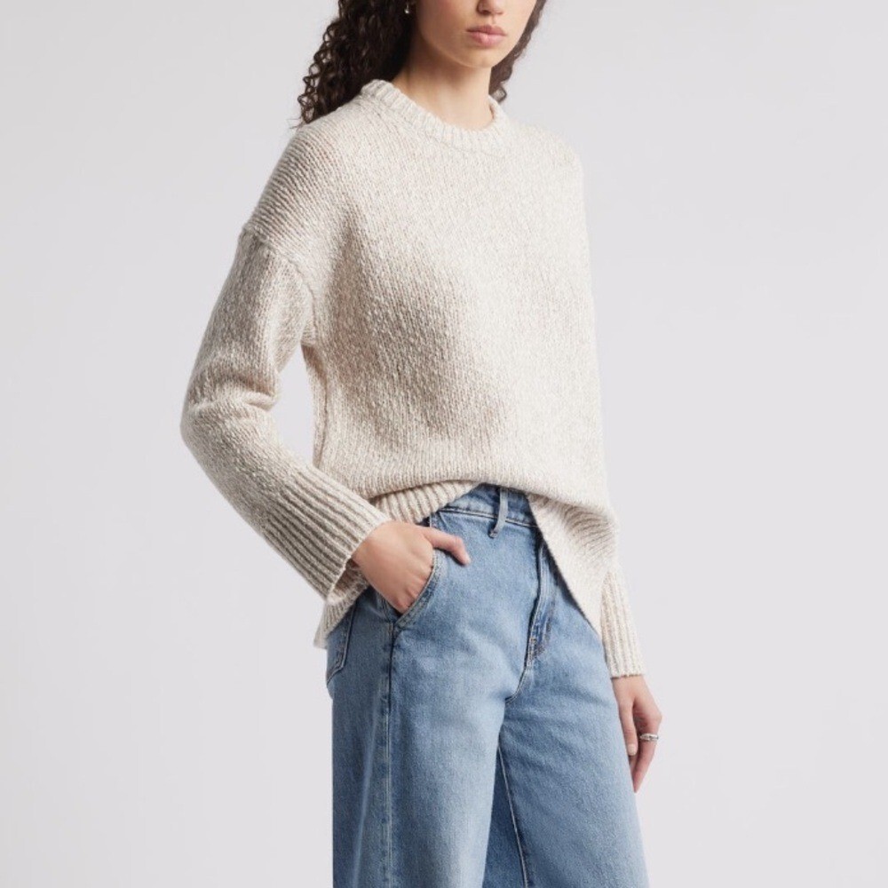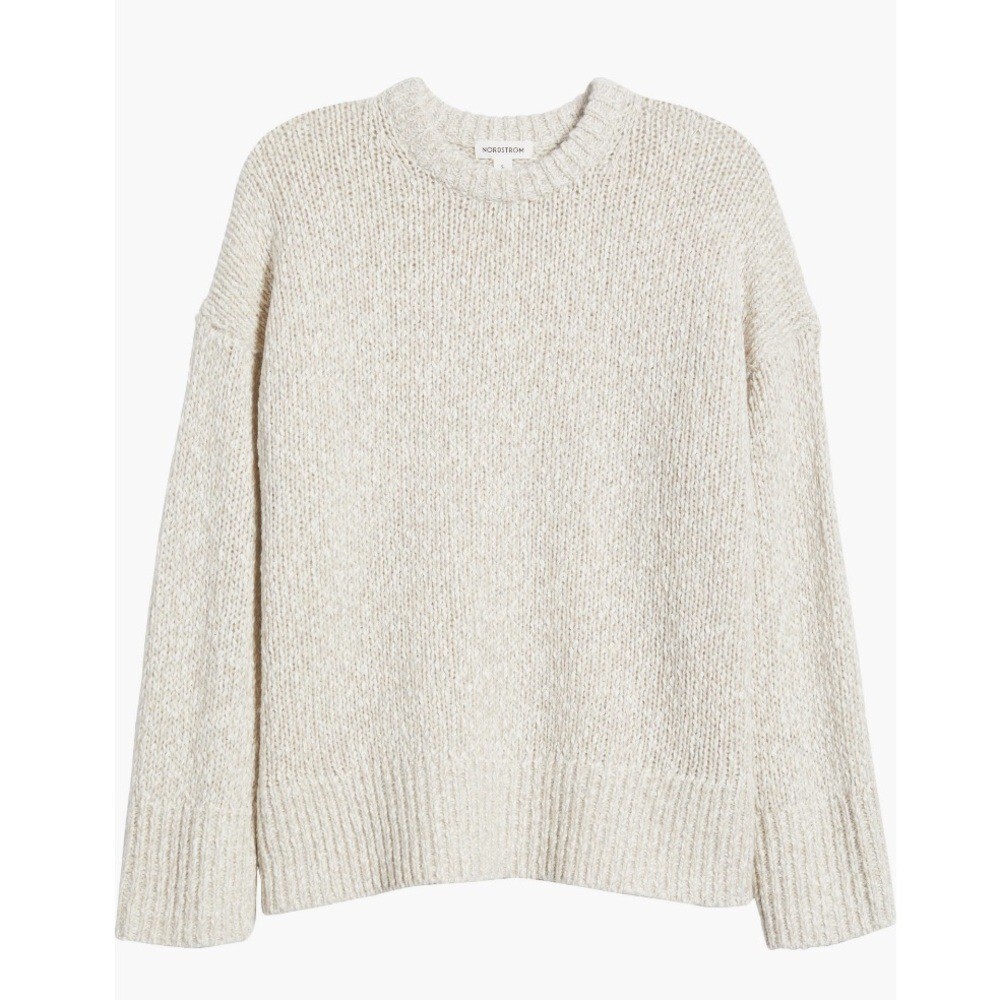 - NORDSTROM Marled Cotton & Wool Crewneck Sweater, Size Medium, Beige/Ivory, NWT