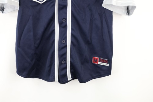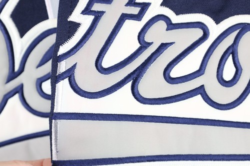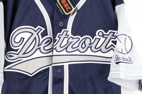 NOS Vintage Mens Medium Spell Out Script Detroit Tigers Baseball Jersey Blue