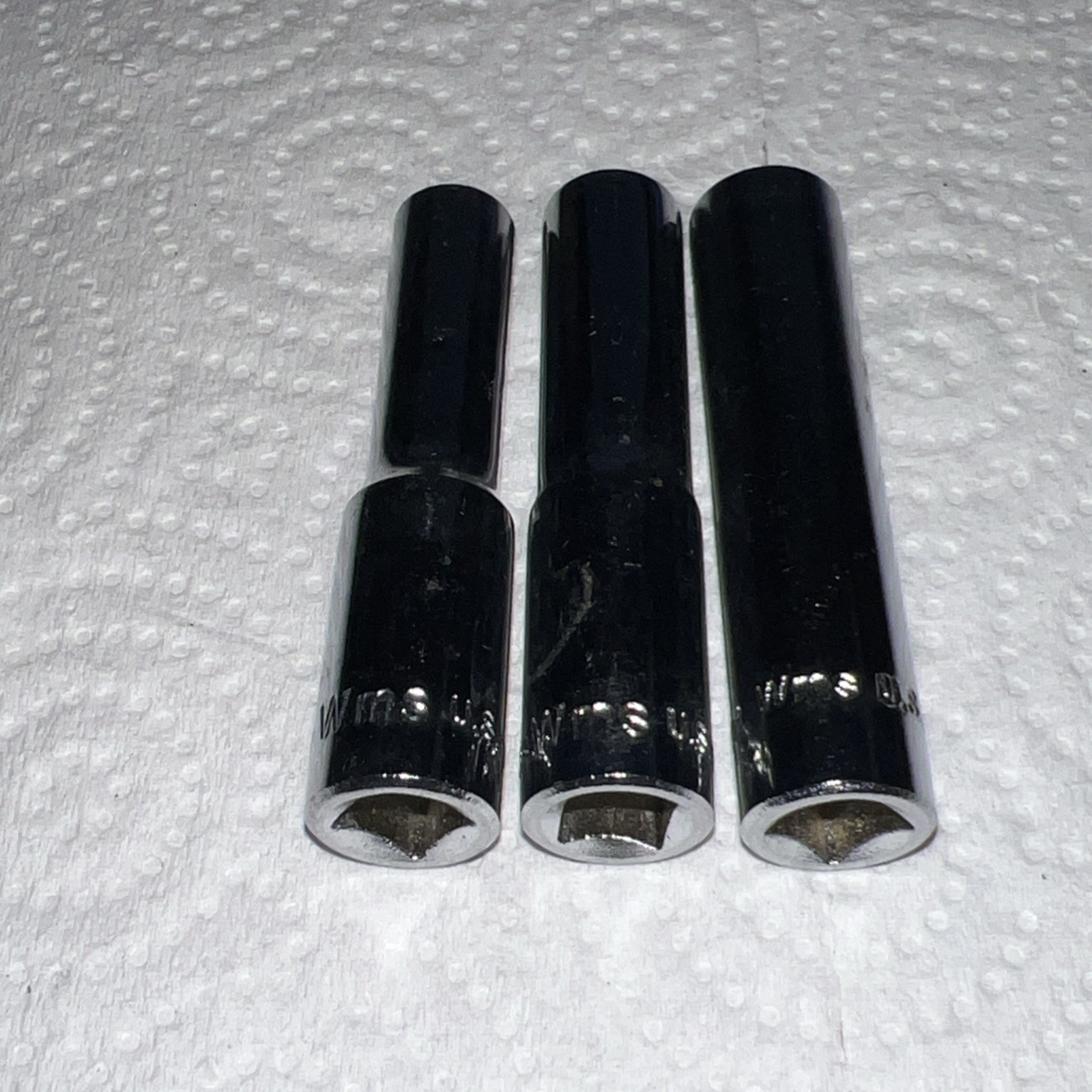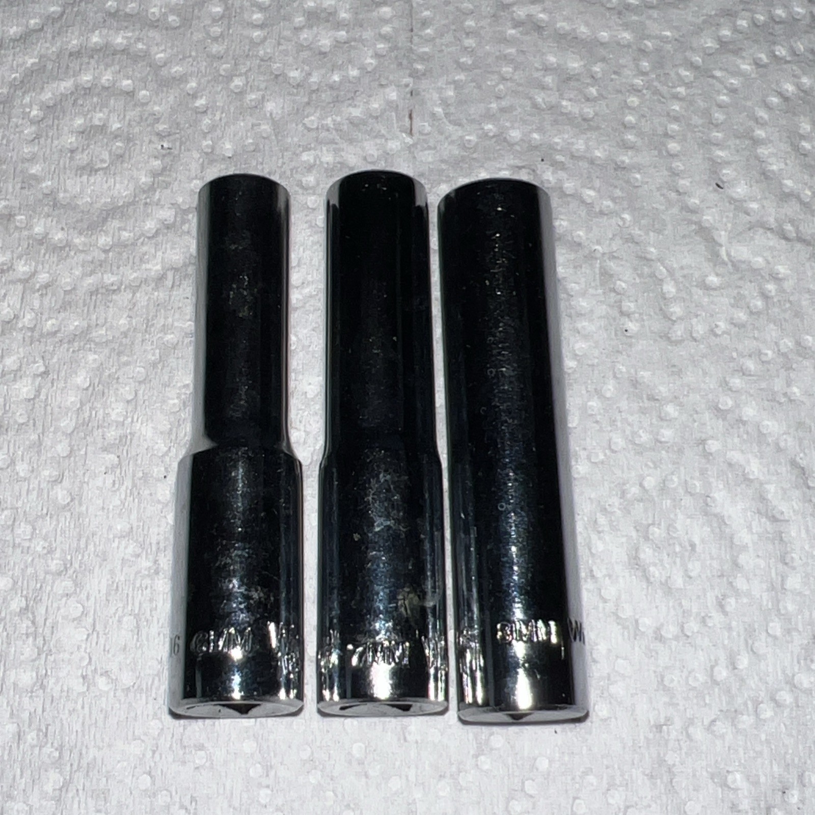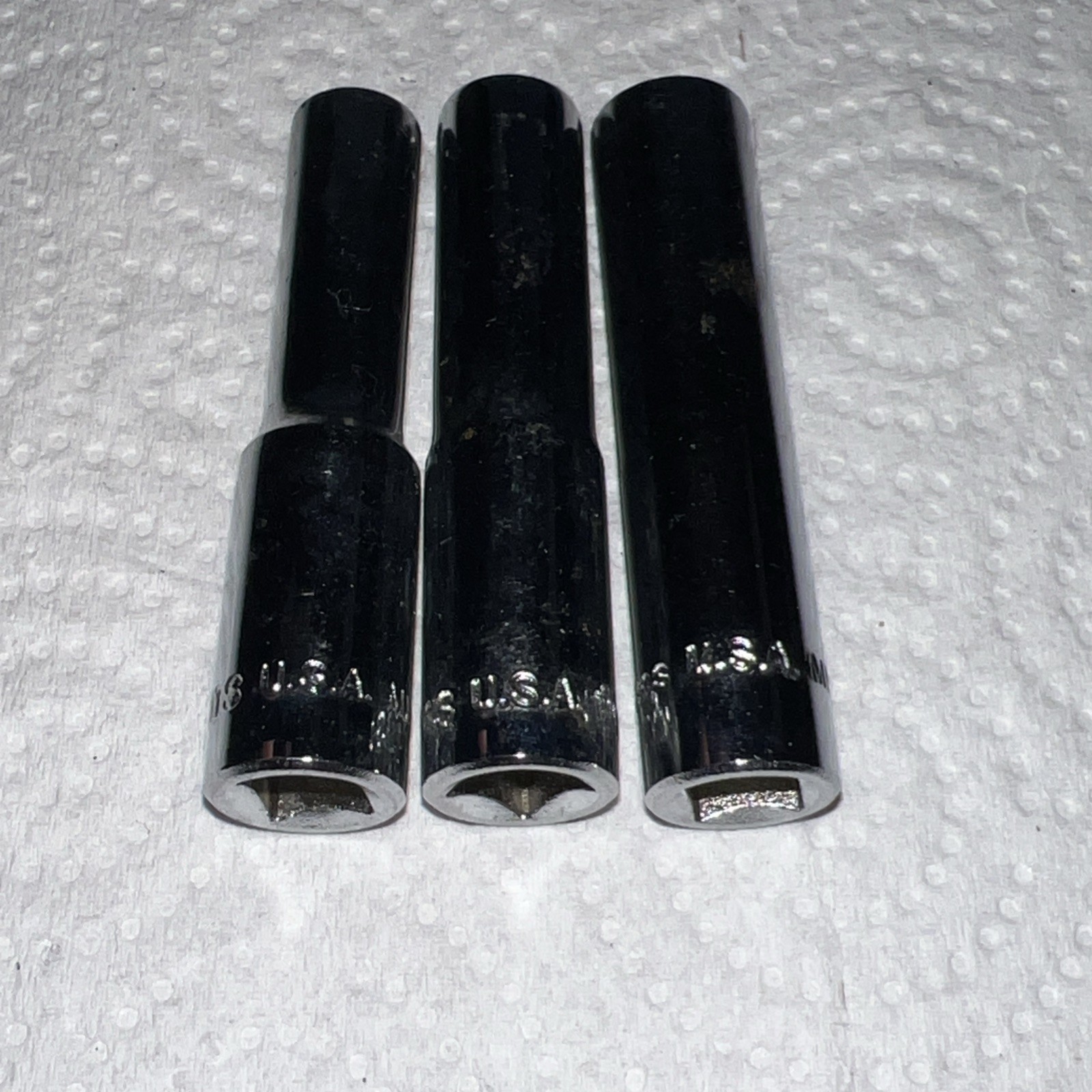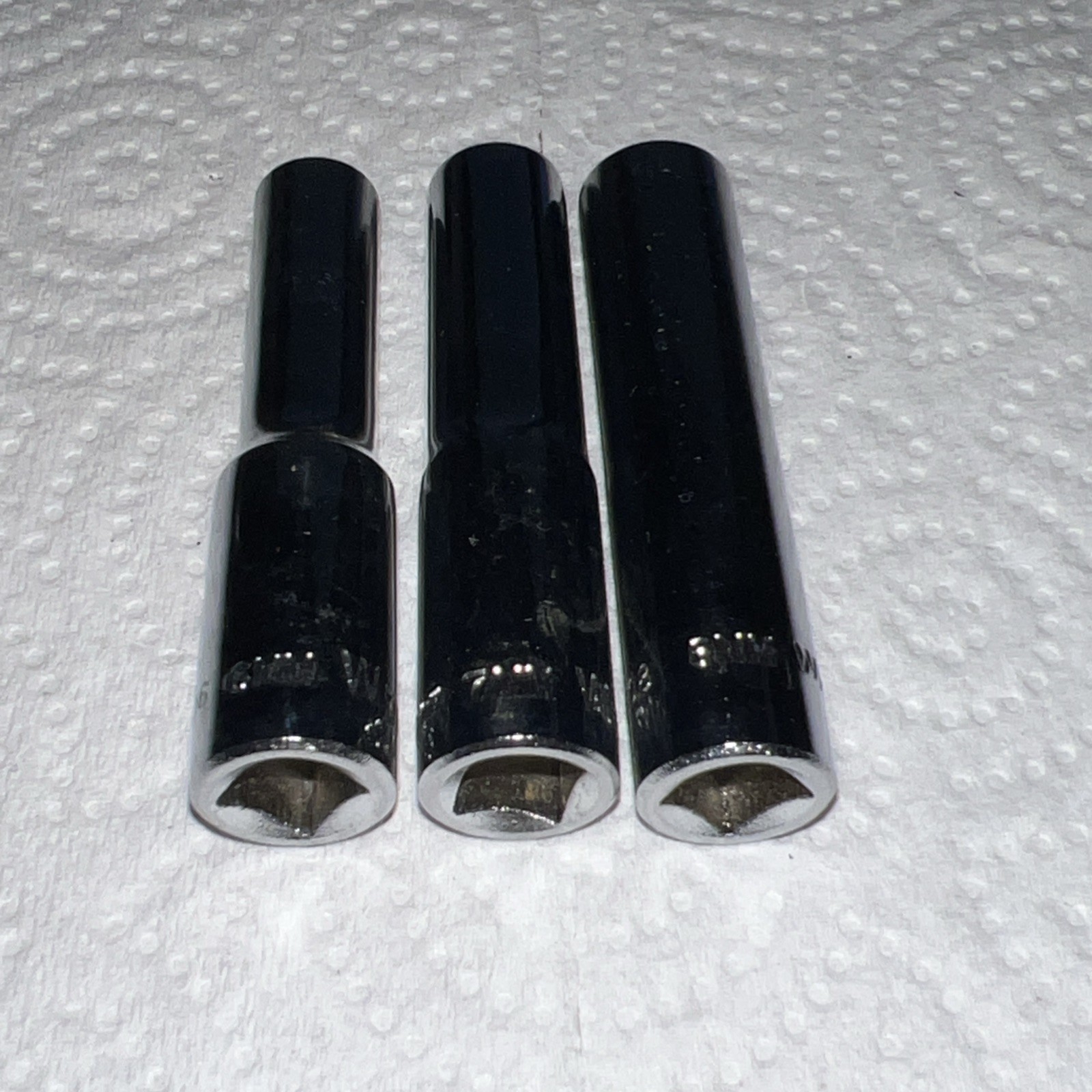- NOS Vintage Williams 1/4” Deep Socket Set , Lot of 3, 6 Point, 6mm,7mm,8mm. USA