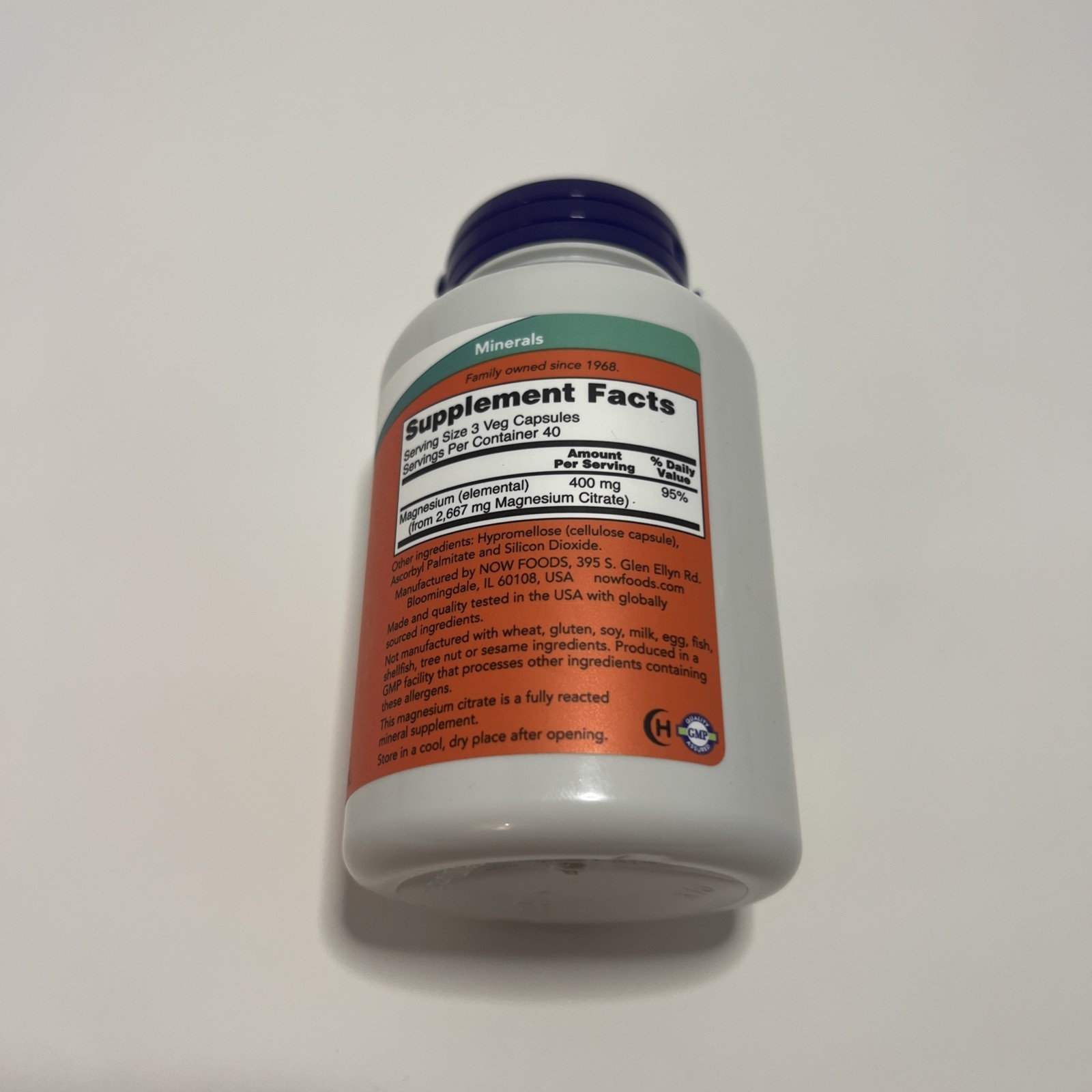 - NOW Foods Magnesium Citrate 400 mg 120 Veg Capsules Vegan Vegetarian EXP 04/2029