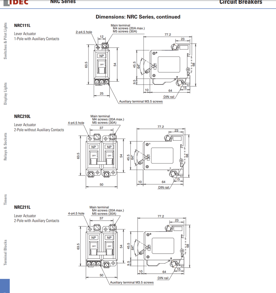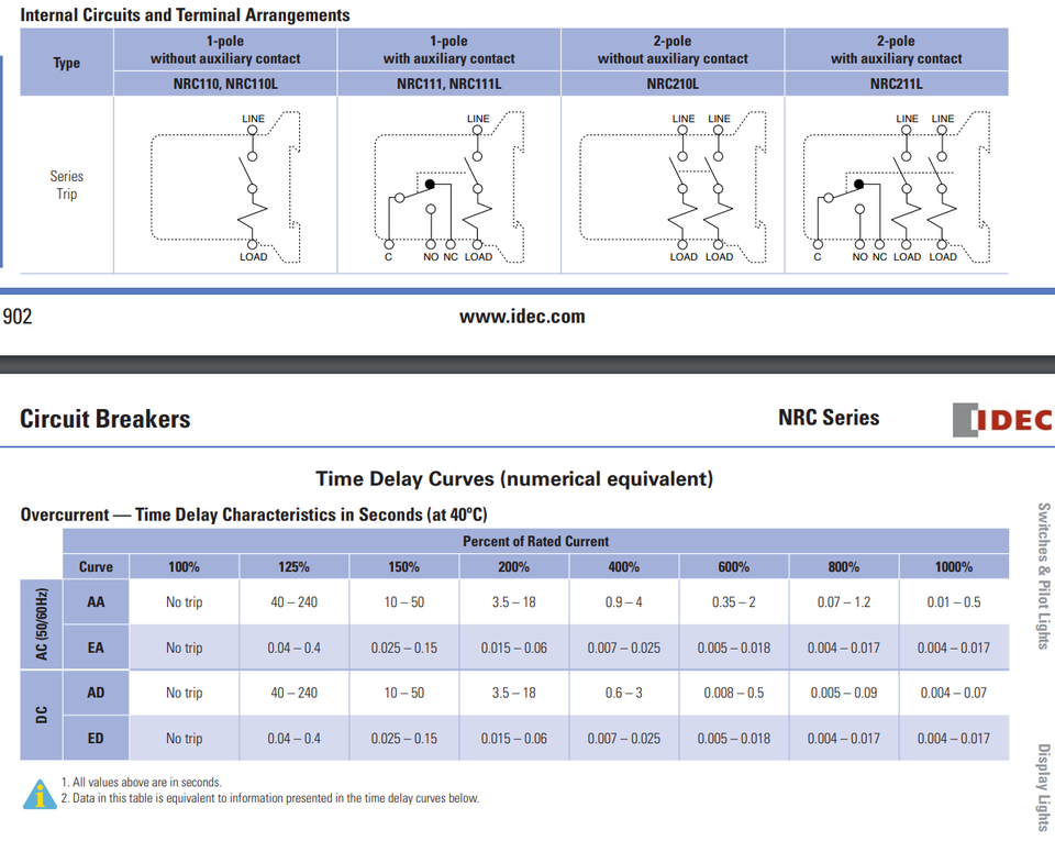 - NRC211L-5A-AA IDEC Circuit Breaker NRC 2Pole 65VDC 250VAC 5A A Trip Curve