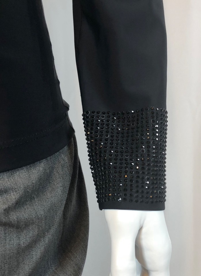 This is a great Adam Selman Sport shirt. The Crystal trimmed black stretch top feature mock neck with Black Crystal trimmed cuffs. nbsp; Brand new without tags SAMPLE. SEE ITEM SPECIFICS ABOVE FOR INFO ABOUT SAMPLES. Sz S, no size tag.