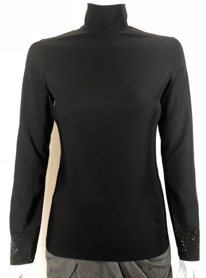 - NWOT Adam Selman Sport Carbon38 Black Crystal Trimmed Mock Neck Stretch Top S