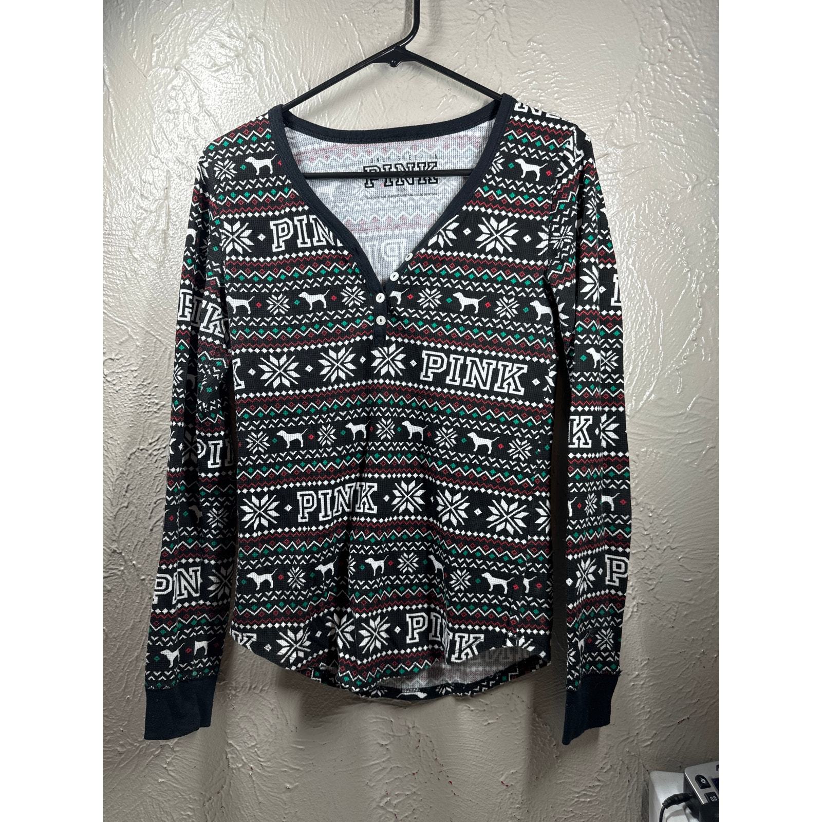 - NWOT Victoria's Secret PINK Long Sleeve Thermal Sleep Top Pajamas Size Medium