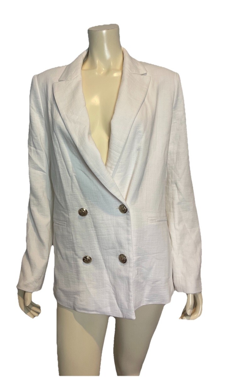 - NWT Banana Republic White Double Breasted Lined Linen Blend Blazer Size 10