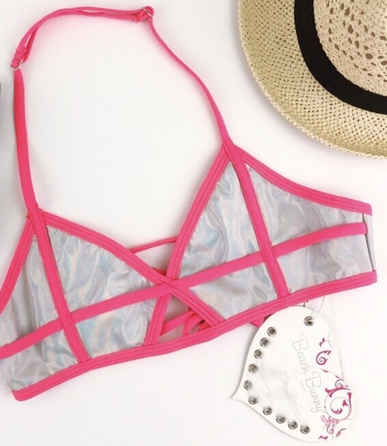 - NWT Beach Bunny Blade Runner Holographic Silver Coral Bikini Top XS Bottom S Set