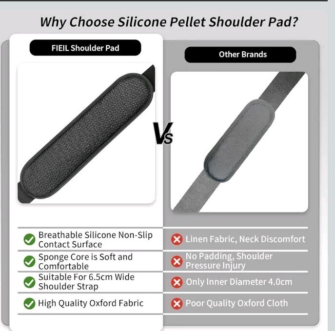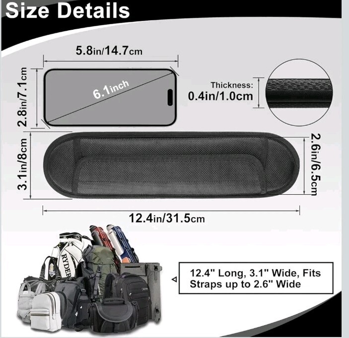 Material Size: Extra thick padding made of Oxford fabric + memory foam + Silica Gel Particles, It provides support, cushioning, shock absorption,anti-slip, and breathability for your shoulders to stay comfortable. Replacement shoulder pads fit all straps up to 2.6 '' (6.5 cm) in diameter.