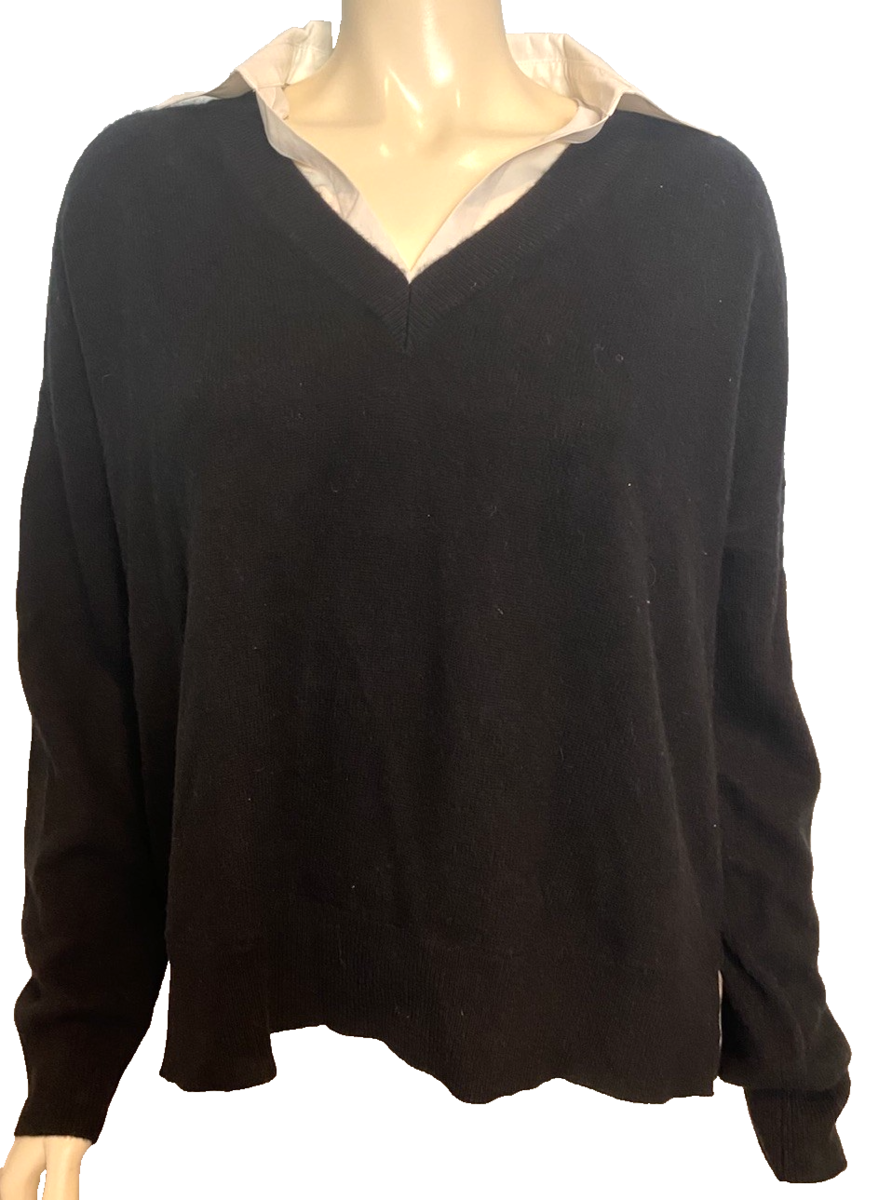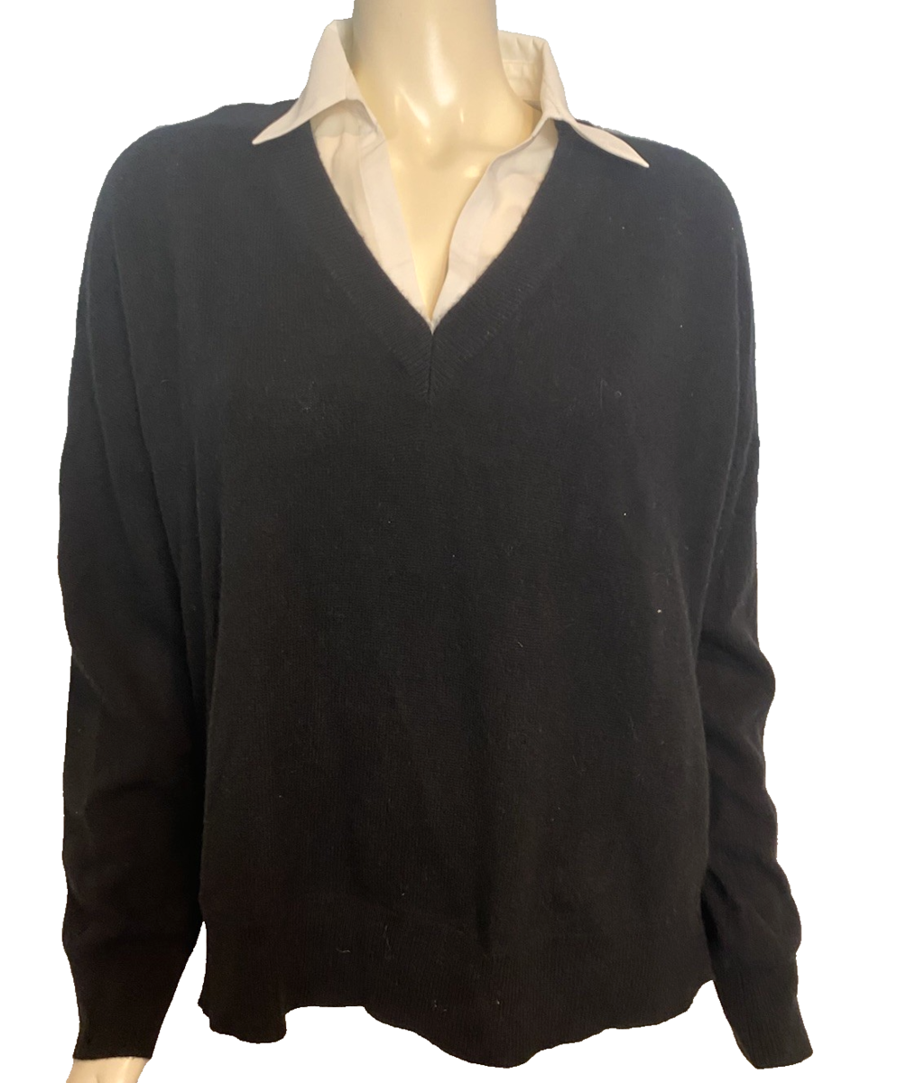 New with tags! C by Bloomingdale's Cashmere Black and White Long Sleeve Collared V Neck Sweater