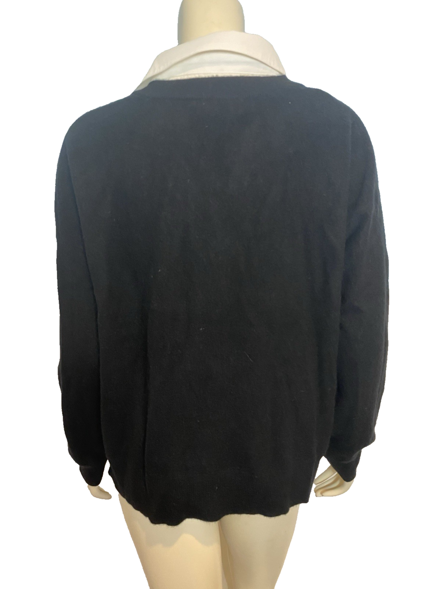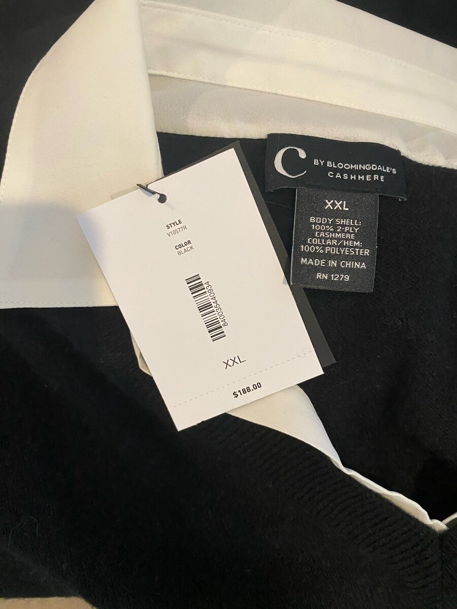 - NWT C by Bloomingdale's Cashmere Black & White Collared Long Sl Sweater Size XXL