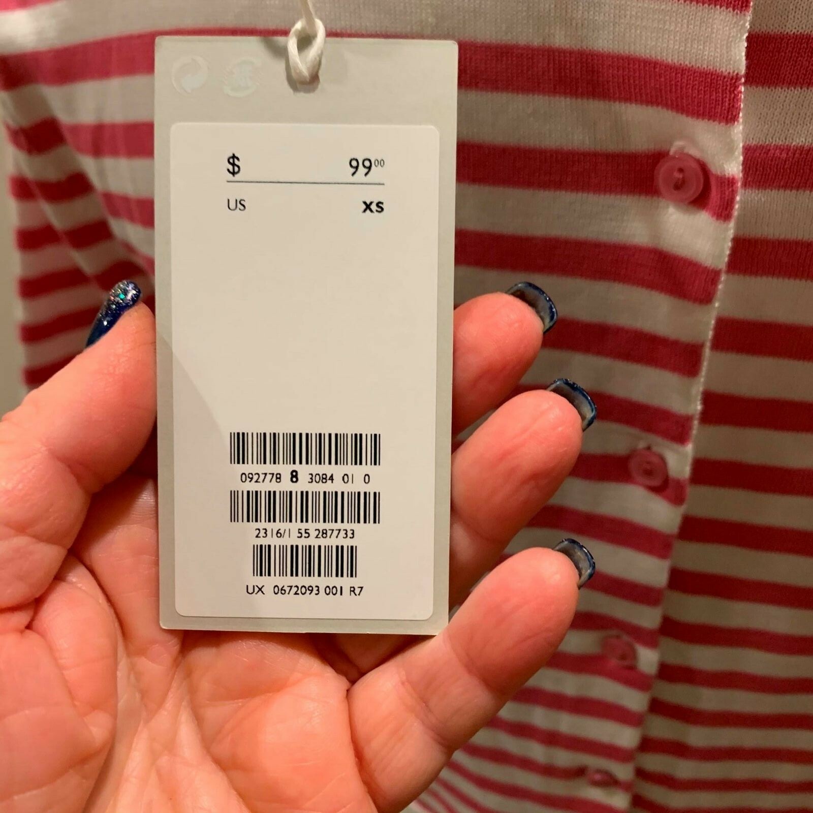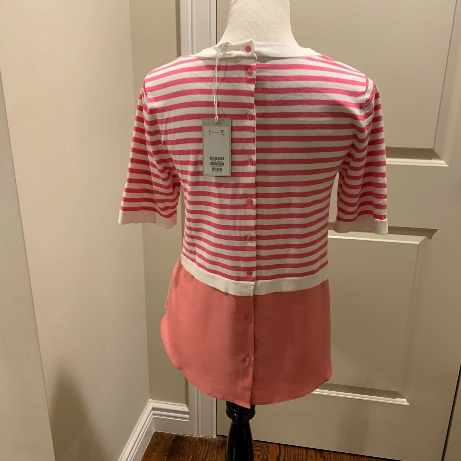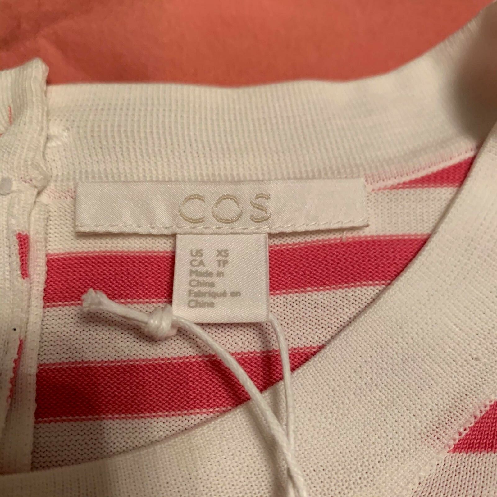 - NWT COS Button Back Pink and White Cotton Silk Sweater SZ XS
